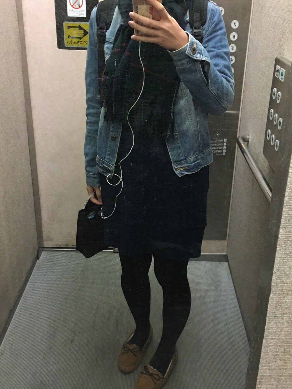 ビームスハートのスエットワンピは、全然見えないけどケーブル柄になってて可愛いのと、着心地がよい。 モカシンは去年のしまむらとハリスツイードのコラボ。 カフェで勉強。