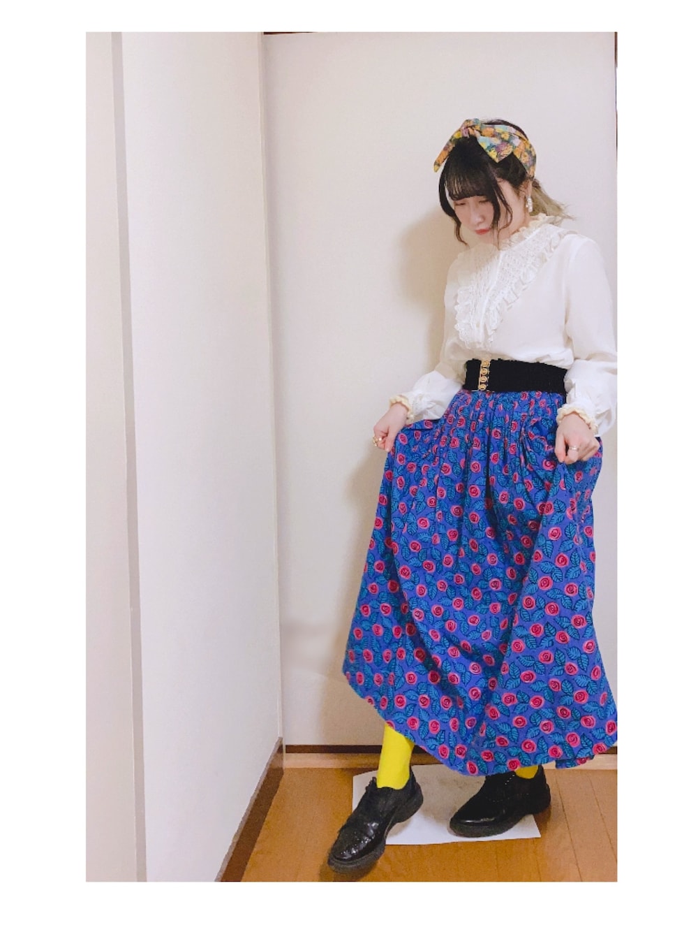 レモンイエローのカラータイツ。 青系のお洋服と合わせると履きやすい◎