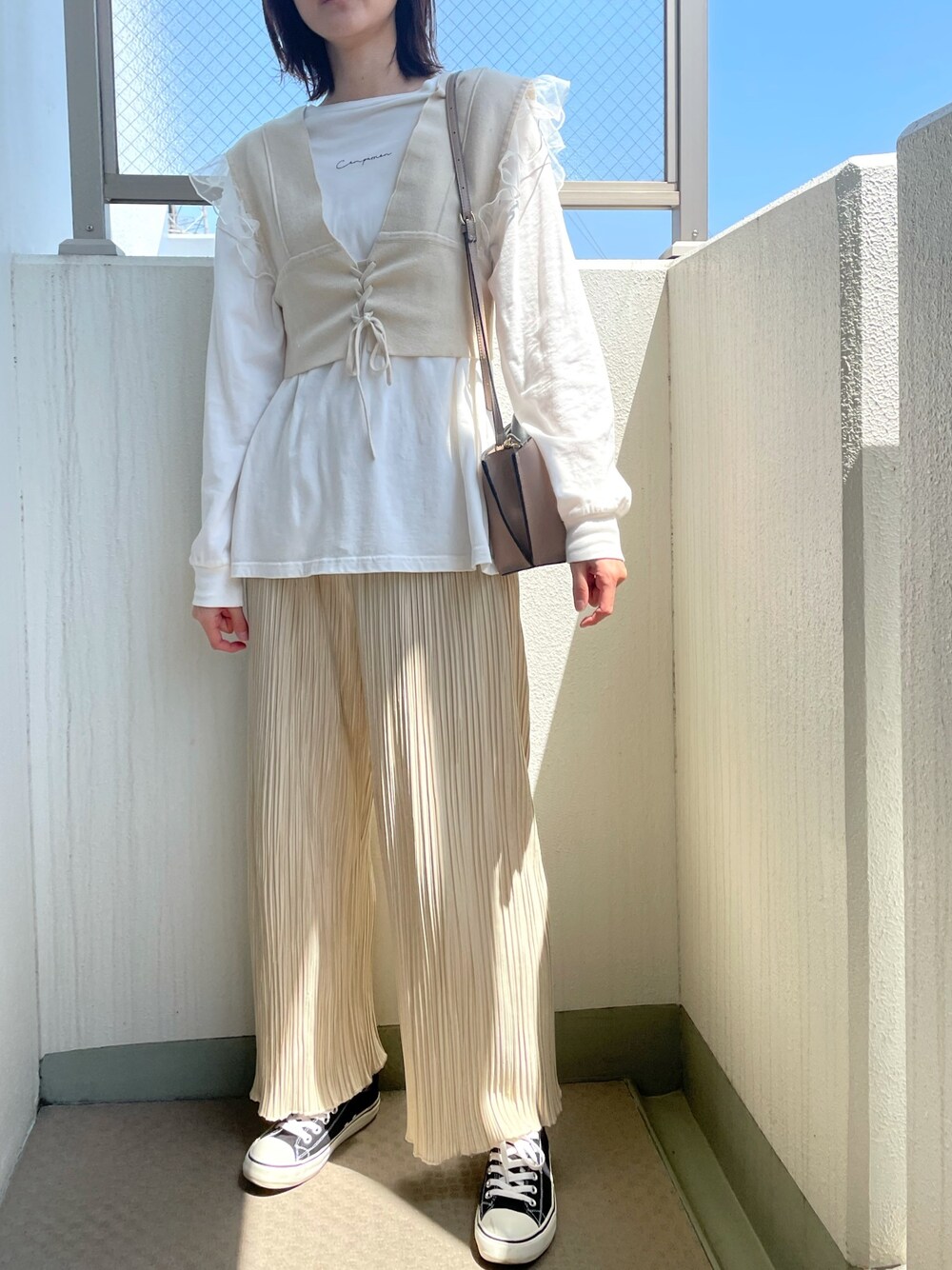 ご覧いただきありがとうございます♥ 本日のコーデ𓍯 ☄︎ mysty womanのニットビスチェ アイボリーも欲しくて メルカリでお安くget ✌︎ これからの季節たくさん着たいです(*´˘`*)♡