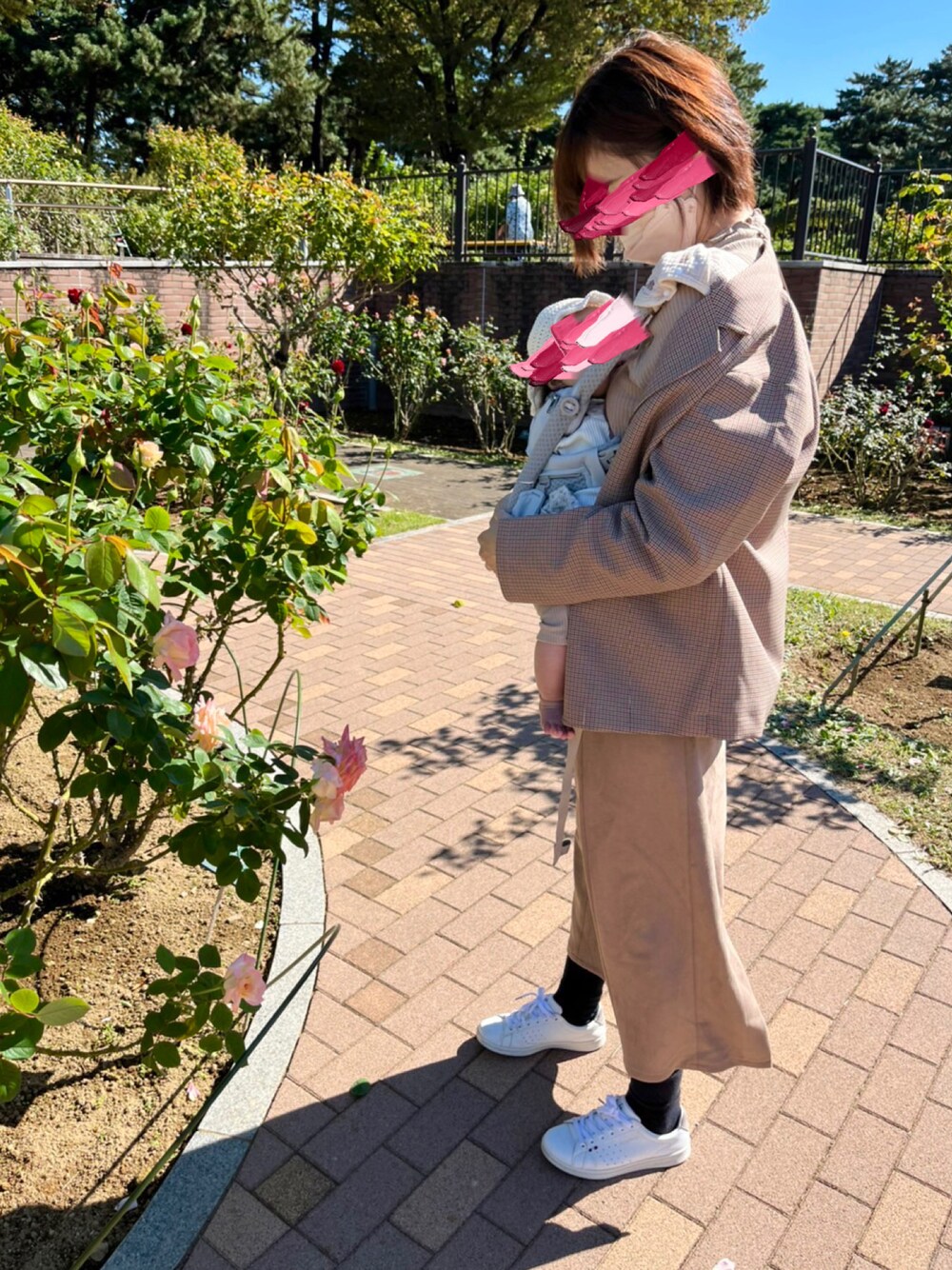 ご覧いただきありがとうございます𓍯 この日は娘とバラ園へお出かけ🥀 抱っこ紐の上からジャケット 着ちゃいました🤣