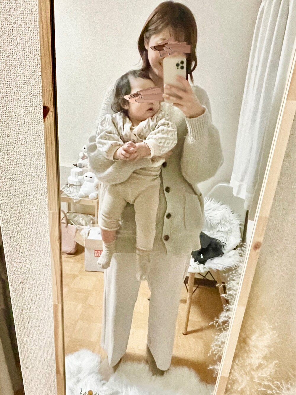 ご覧いただきありがとうございます(。ᵕᴗᵕ。) 娘とインナーとカーディガン合わせの リンクコーデ♩¨̮ 暖かくなってきたので 春コーデ🌸