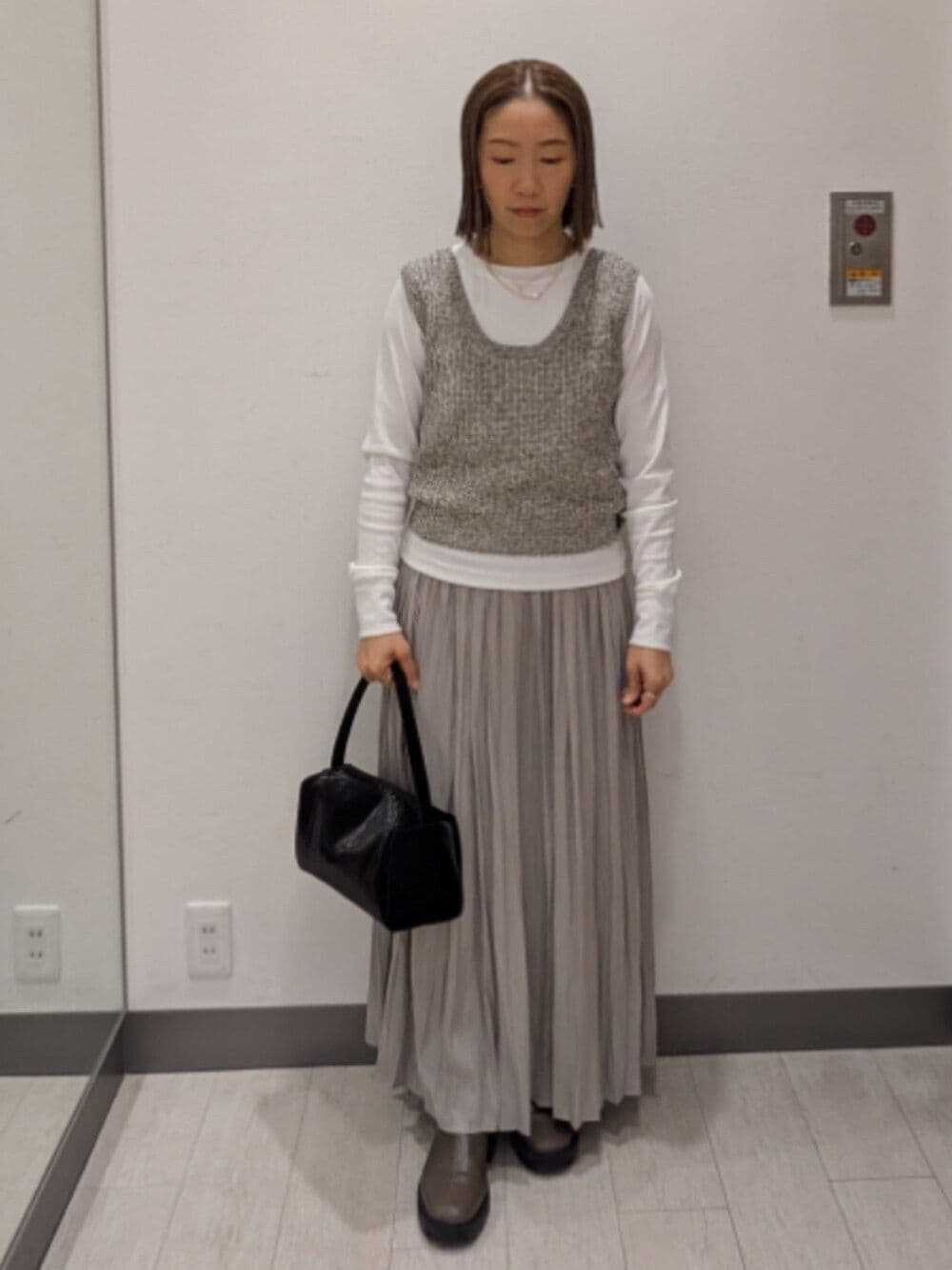 MIHO(UR Make Store 東急プラザ蒲田)のベスト「メランジテープヤーンUネックニットベスト」を使ったコーディネート