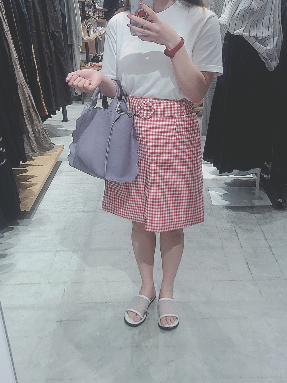 紫のbag💜×赤のスカート💋 相性が良かった〜〜!お気に入り!