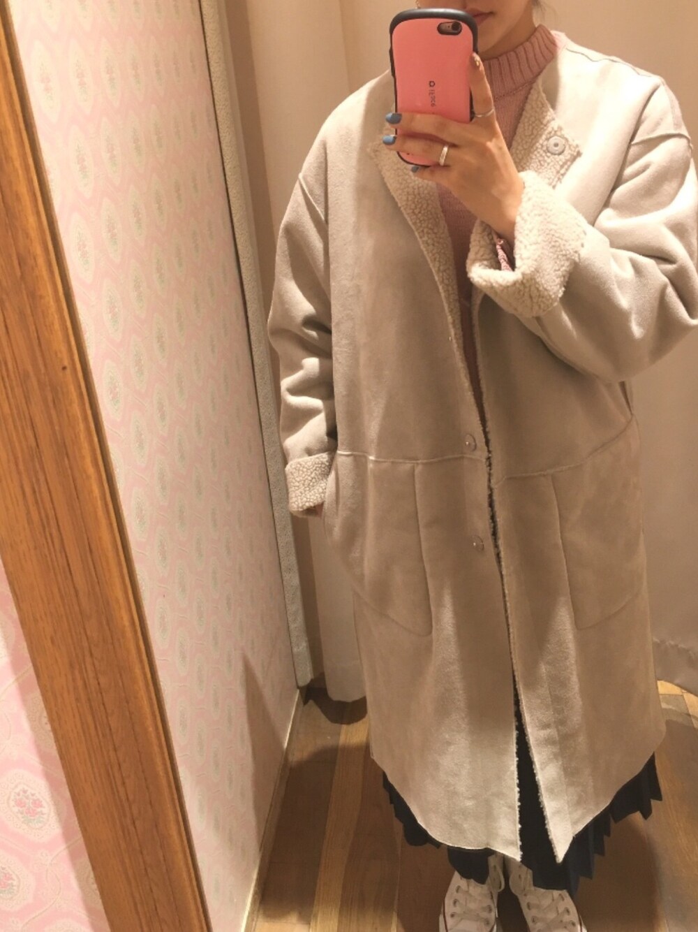 リバーシブルのノーカラームートンコート 可愛い可愛い♡