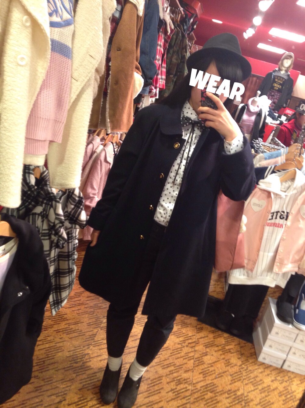 ドット の シャツ で お茶目 な 感じ . . . あと、 最近 学校 の コート を 合わせる のに ハマってます 。