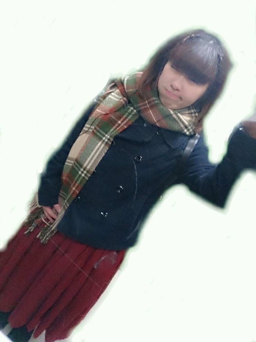 Pコート(紺) / スピンズ ロングスカート(ボルドー) / WEGO ストール / スピンズ