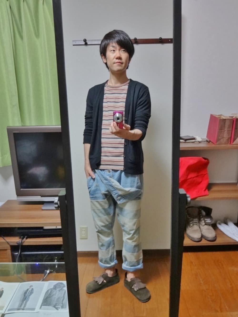 近場のセレクトショップで4~5年に一度の大処分セールで激安で手に入れたカットソーたち。上下ボーダーで合わせました。