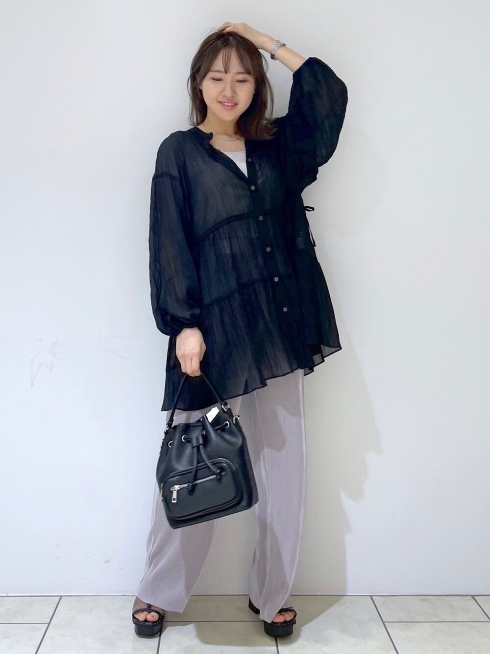 楽ちんデイリーコーデ❤︎ ブラックでもシアー感があるので重くなく使って頂けます◎ チュニックがブラックでメリハリがでているので、パンツやインナーはグレージュで女性らしさも忘れずに☺︎ 2色を使ったコーデなので統一感もありオシャレに決まってくれます‼︎