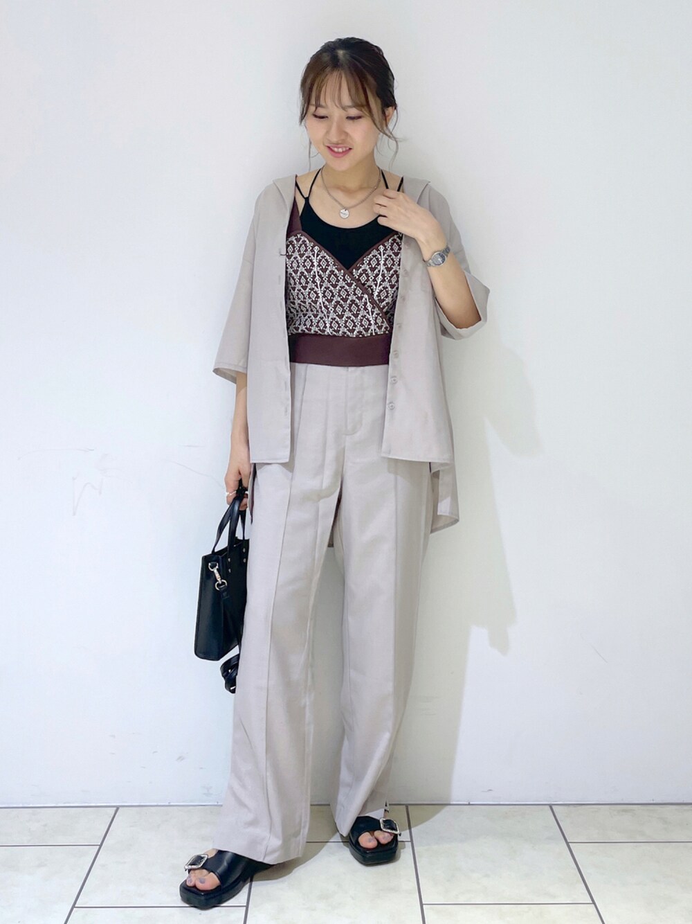 セットアップコーデ❤︎ ワンパターンににならないようにジャガードビスチェを合わせてポイントに❤︎ このセットアップはセールでめちゃめちゃ破格になったんです! セットアップがこんなにお求め安くゲットできるなんてなかなかないので、皆さん今がチャンスですよ☺︎ 是非チェックしてしてみてください!