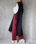 レイヤードスタイル☺︎ サイドにベルトのついたデザインのロング丈ベスト‼︎ ノースリーブのデザインなのでロング丈でも重くならず使えます◎ 女性らしいコーデにしたかったのでスカートをレイヤードしてみました♪ もちろんデニムはカラーパンツを合わせても可愛いですよ◎