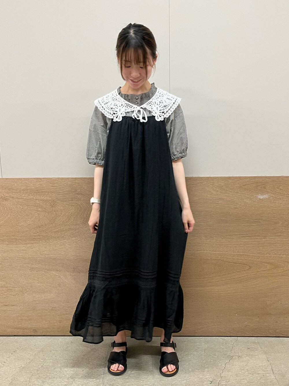 モノトーンだけど、可愛いコーデを組んでみました! 襟はあるとよりガーリーに、なくても充分可愛いです❣️ メッシュ素材のキャミワンピはブラックでも重たくなりすぎないので、中のトップスが暗めでも○