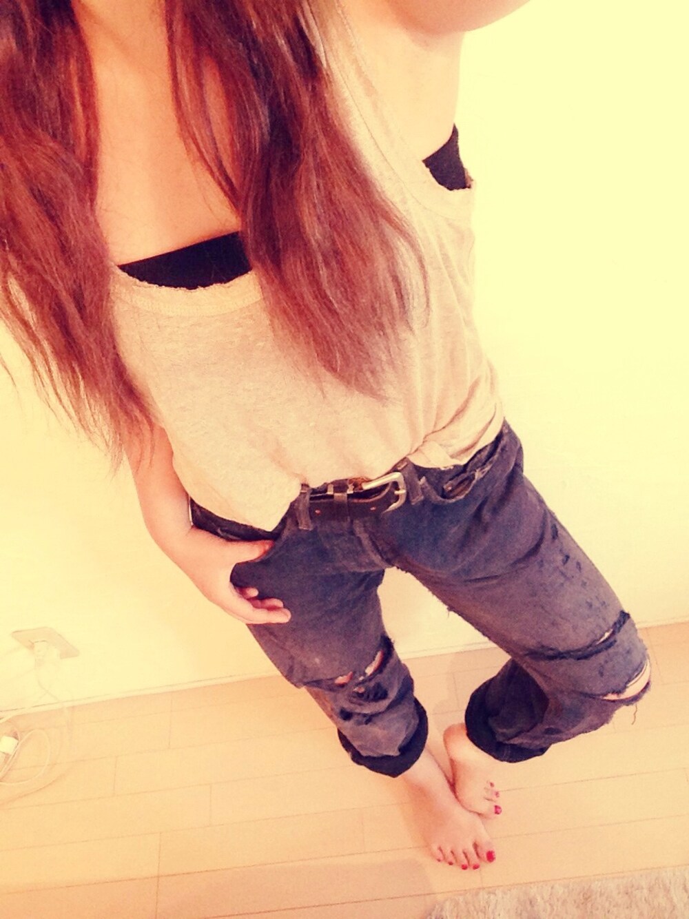 またまたダメージデニムコーデ。 今日は、あっついねーーー