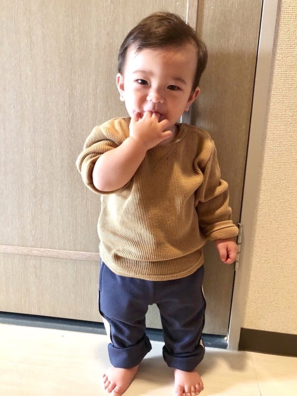 ☺︎見ていただきありがとうございます♪ wear初心者です(*'▽'*) いいねやフォロー大変嬉しいです☆ キャメルのワッフルTがお気に入り☺︎ 少し長めが良かったので90cmにしましたがお袖が長かったです( ´∀`) 太ラインのパンツは生地も柔らかくストレッチもバッチリで履きやすそうです☺︎ こちらは80cmですが、ボクちゃん足が短いのかこちらも少し長かったので折り曲げて履いてます☆