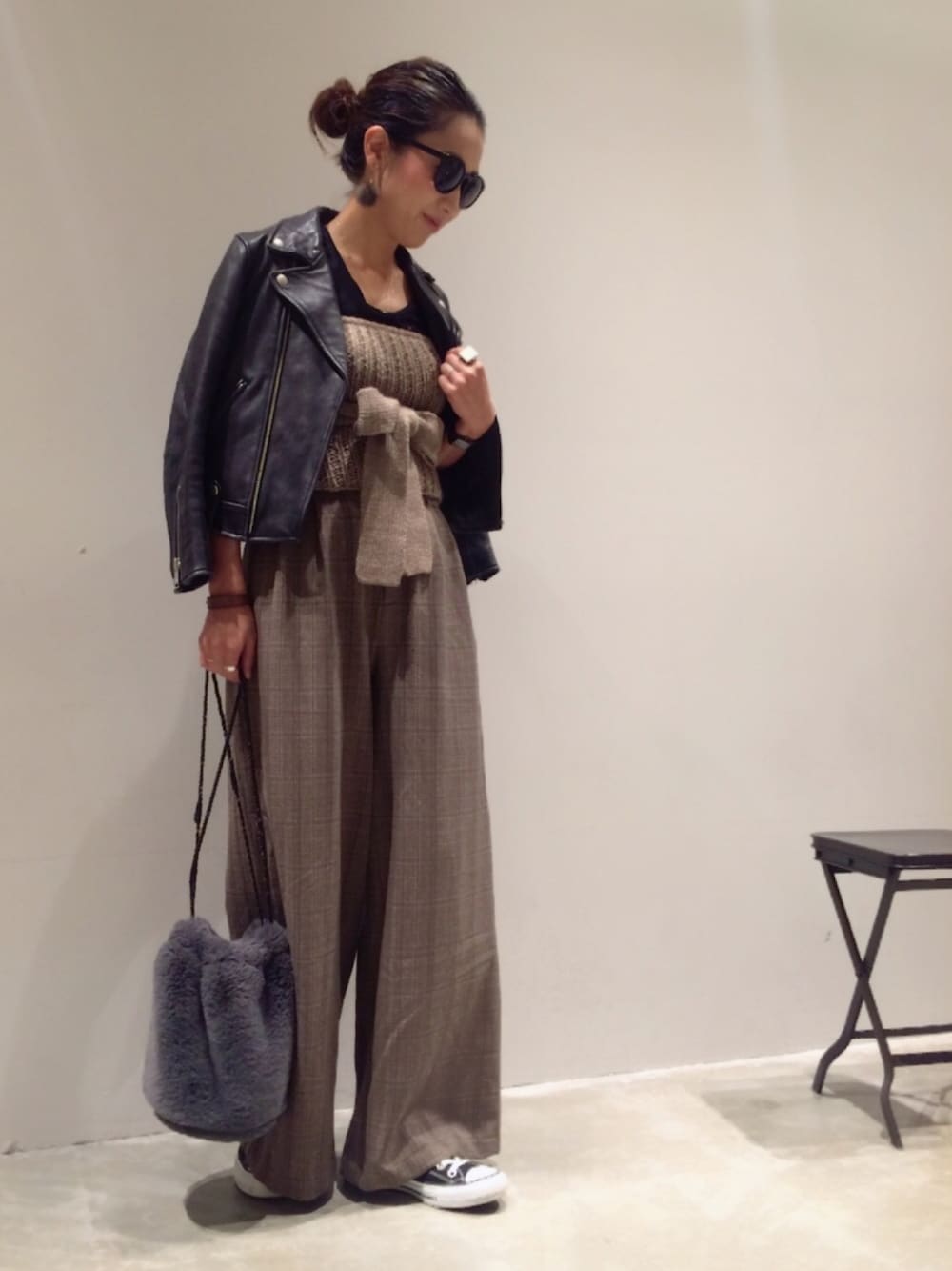 unglidのニットビスチェ、ボリューム感が可愛い♡ ハイウエストのワイドパンツあわせがたまらんいいかんじ♡ instagram→n.mi.misa