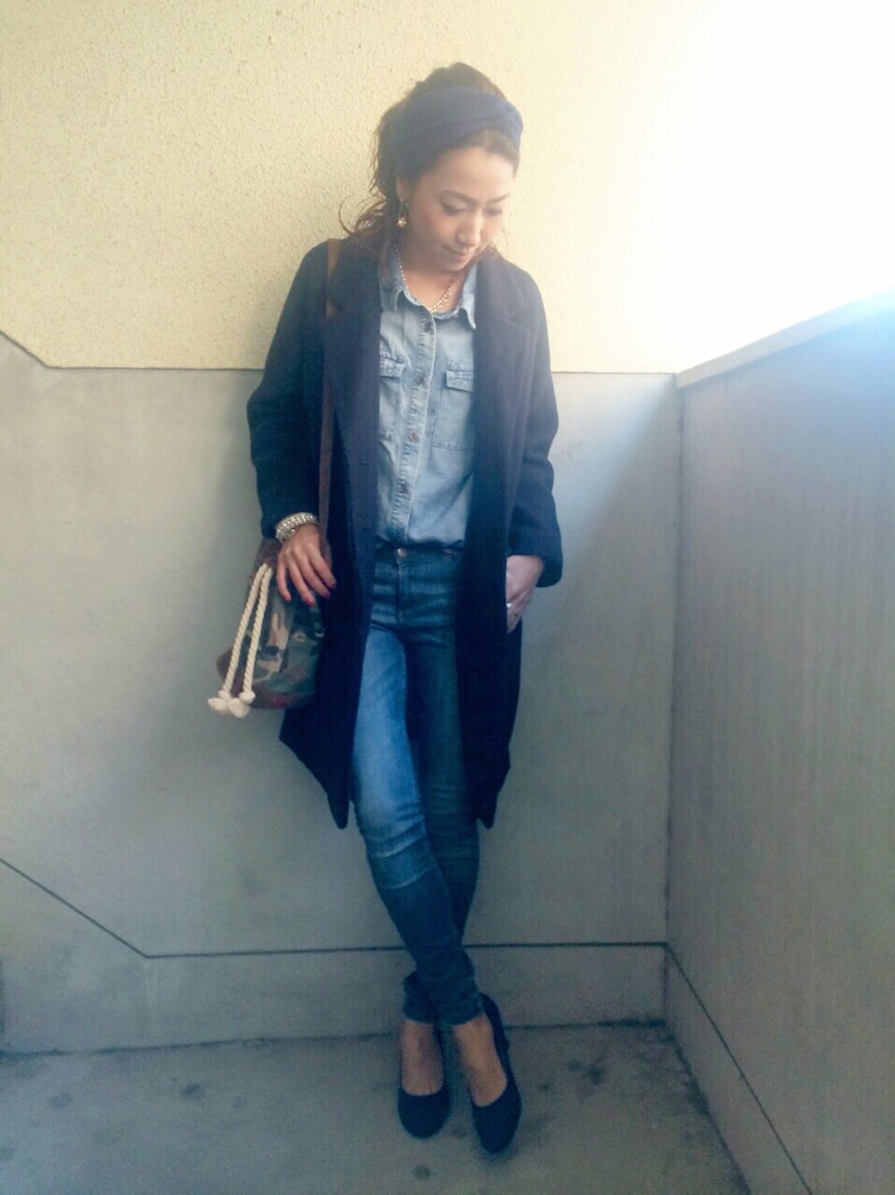 大好きな姉にもらったプレゼントのバック♡ ほしぃーほしぃー言ってたらまさかのプレゼント♡嬉しぃー♡ デニムオンデニムにお気に入りのチェスター♫