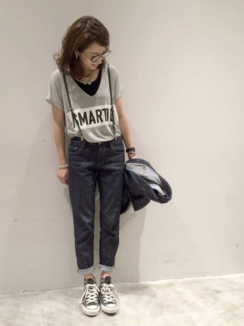 宮崎、セミないてました(笑) そんな日はTシャツで全然オッケ〜♡ 新しいTシャツがほしくなる季節ですよねぇ〜 そして、久々のサスペンダー♡
