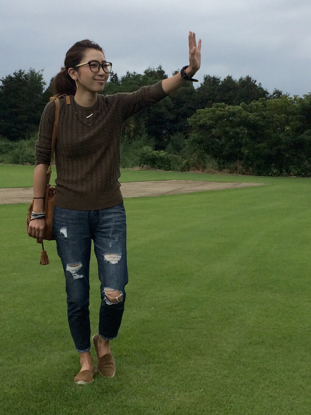 休日〜♡広場でキャッチボールしたのゎいいけど肩がいたいですヾ(・ω・`;)ノ 今日ゎデニム×ニットでシンプルに♡ 毎度の休日ラクチンコーデです♡