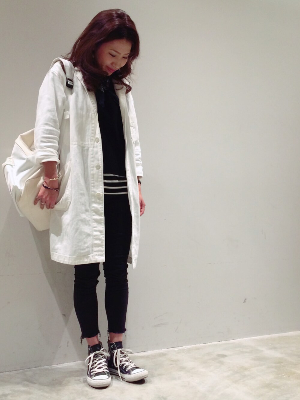 この白のコートがお気に入りです♡ 今日はモノトーン♡
