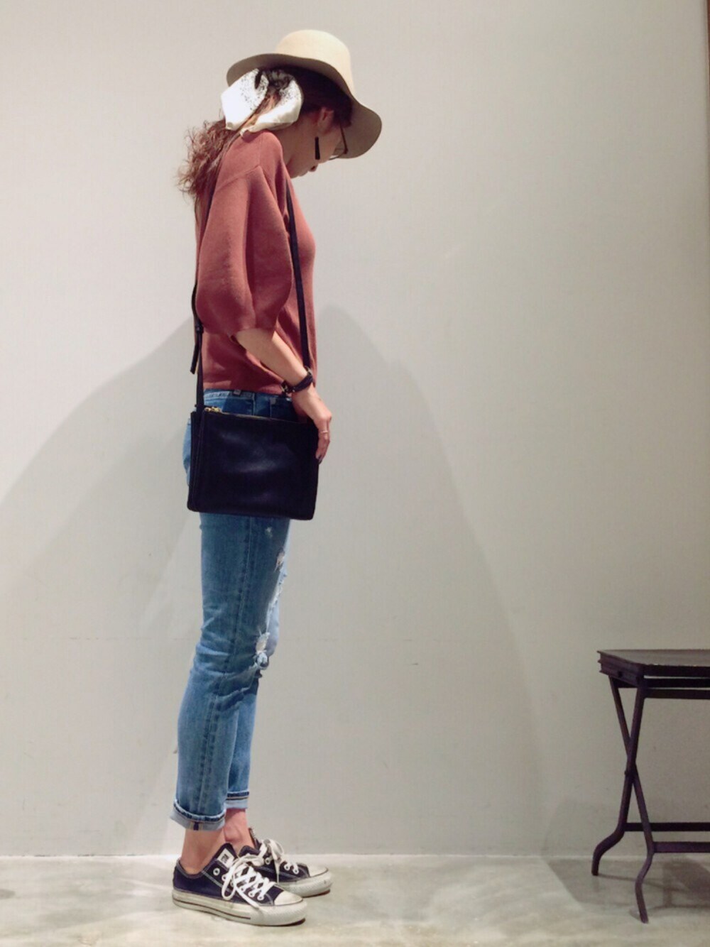 このデニムがヒット❤️ ほどよいクラッシュ感とほどよいストレッチ具合🏃 ちょっとレトロちょうコーデ❤️