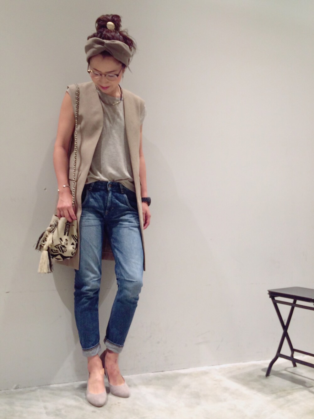 今日はベージュトーン合わせのコーデです♡♡♡ はずせないデニム👖 小物で秋物ばさみ♡ まさに、夏、秋ミックス♡ インスタンひそかに始めてます♡ mi.08.mi
