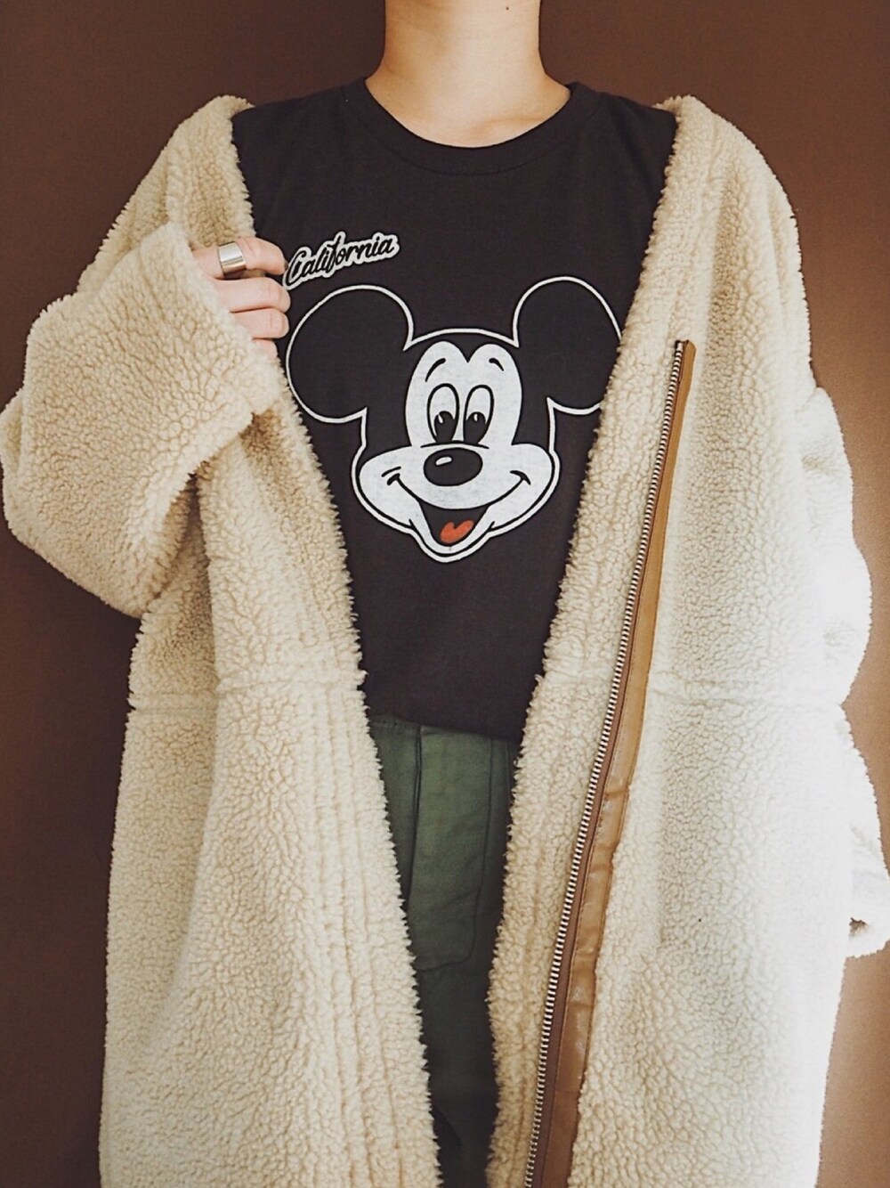 少し前のコーデです! アウター..willfully もこもこにミッキーずっとしたかったやつ🐭 インスタ @micha_n1213