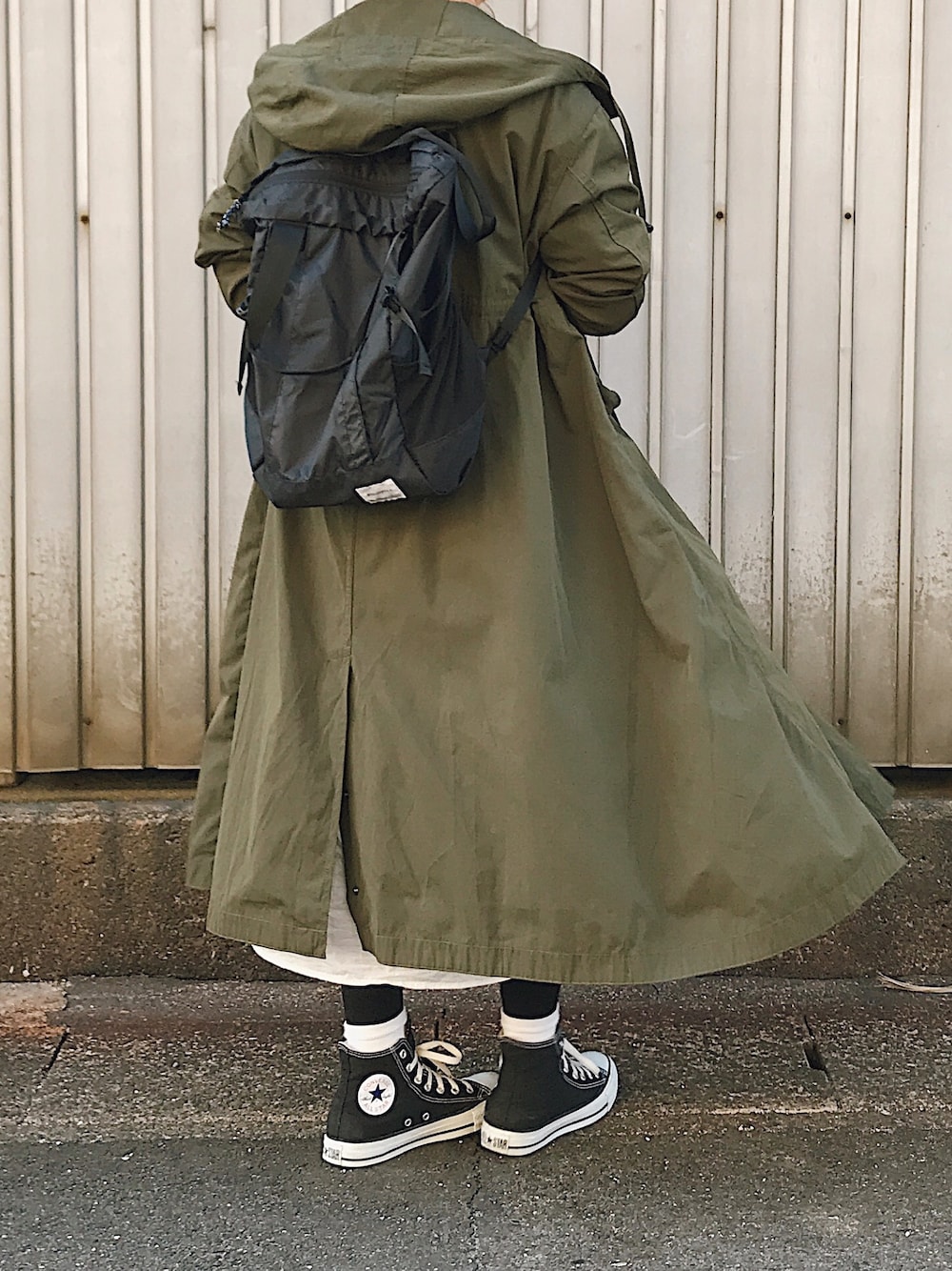 miのミリタリージャケット「[ALLUMER / アリュメール] タッサーロングフーデッドコート」を使ったコーディネート