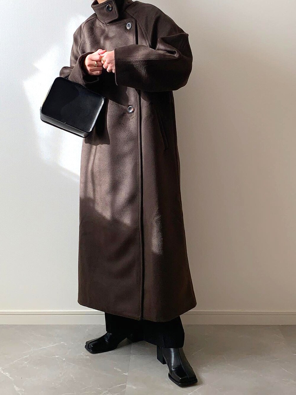 miのその他アウター「2021 AW ハイネックラグランロングコート」を使ったコーディネート