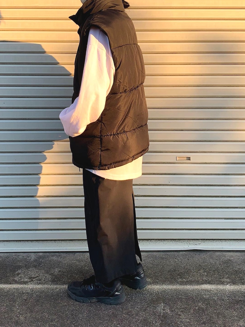 miのダウンベスト「【累計販売枚数1万枚突破!】オーバーサイズスタンドカラーファイバーダウンベスト」を使ったコーディネート