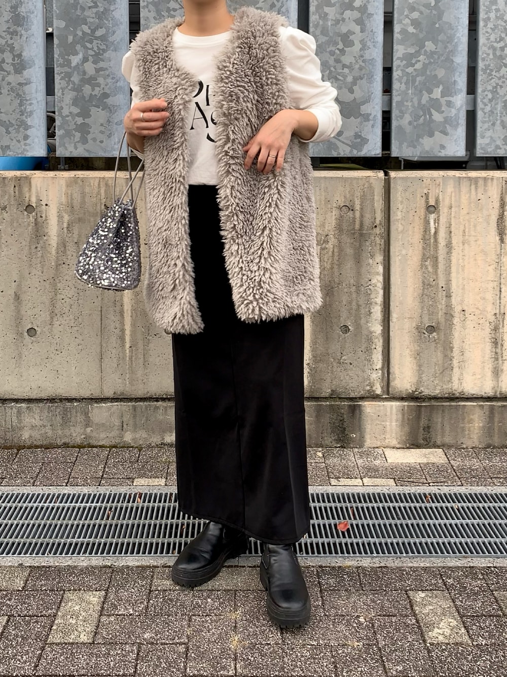 miのノーカラージャケット「プードルフェイクファーベスト」を使ったコーディネート