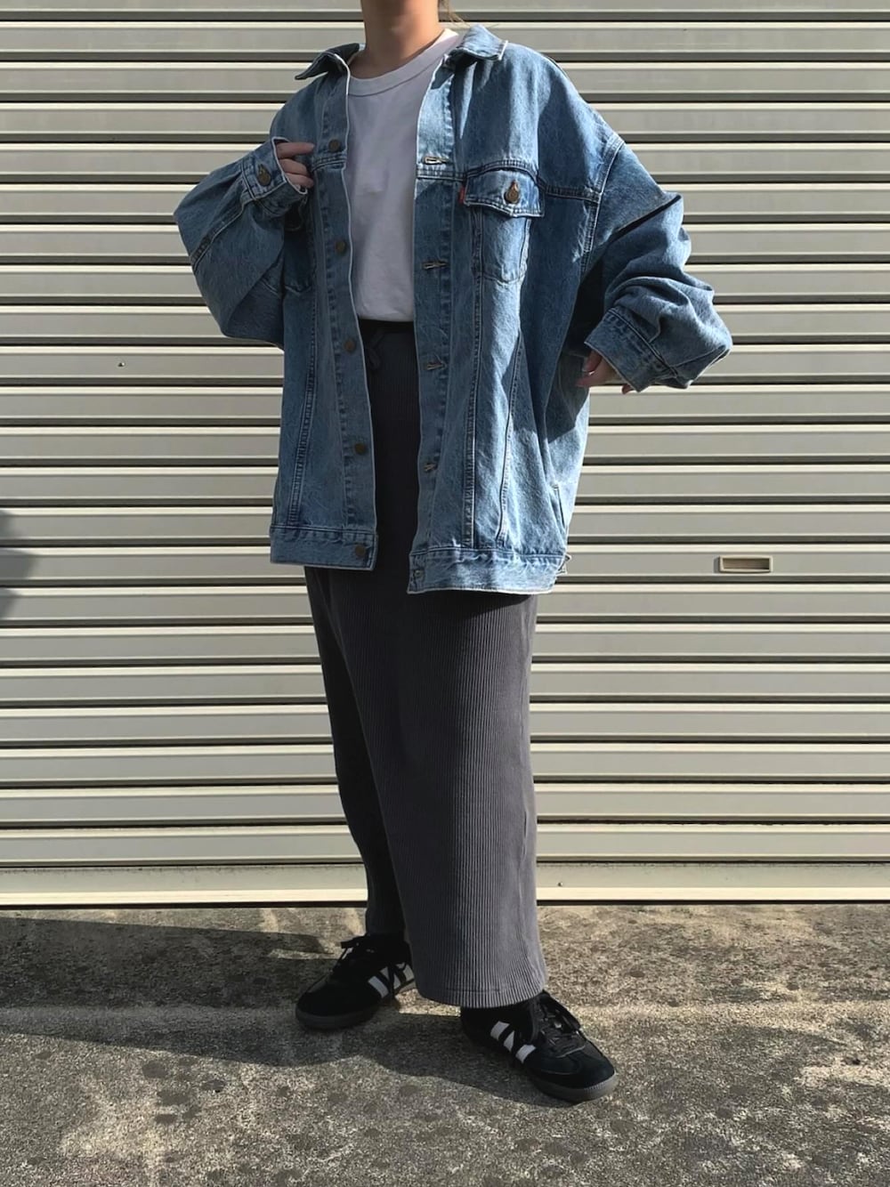 miのデニムジャケット「ビッグシルエットデニムジャケット」を使ったコーディネート