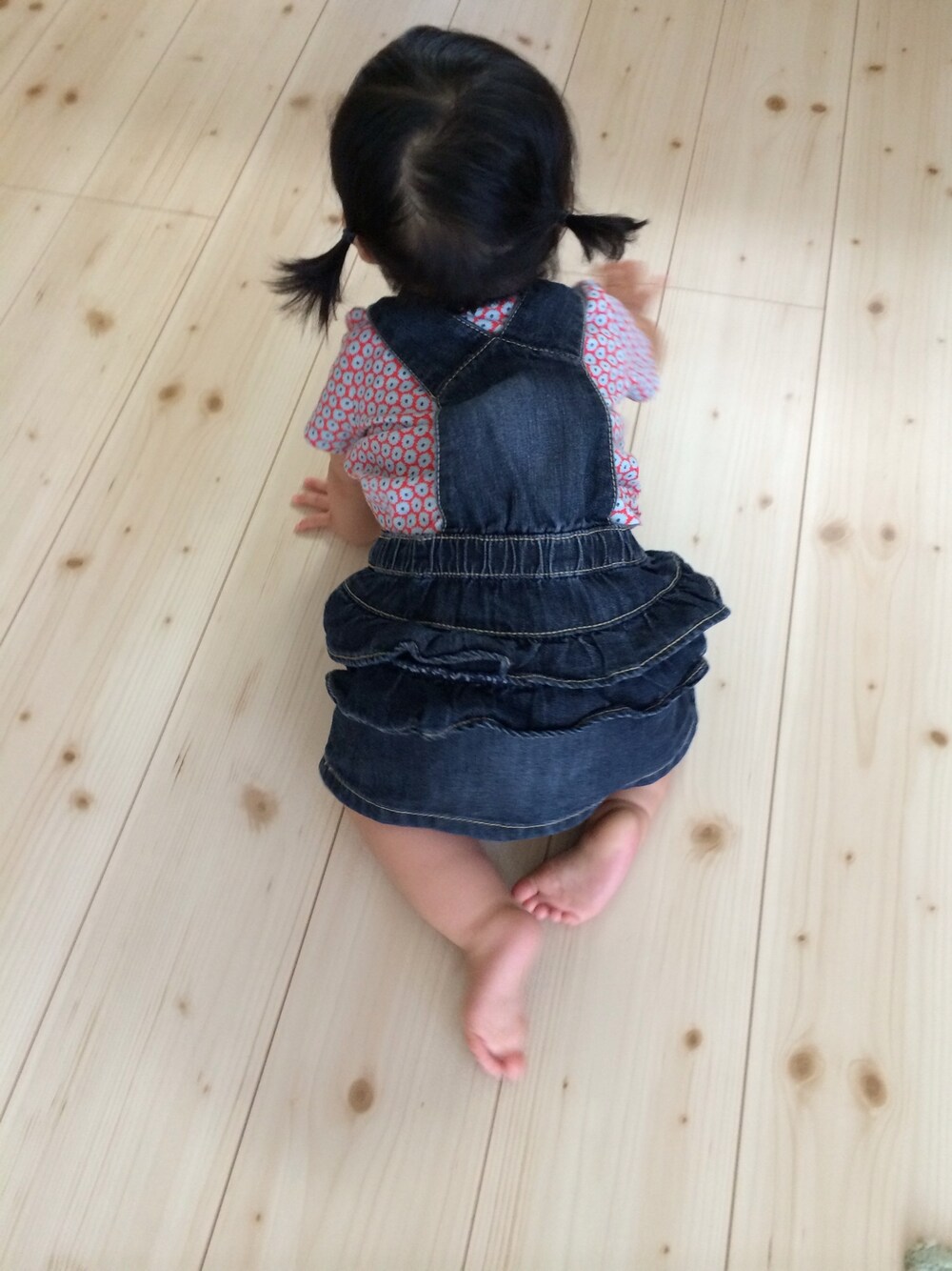 トップス ⁑ futafuta オーバーオール ⁑ オールドネイビー ハイハイしたくて 止まって写真撮るのが 難しくなってきた…(。º̩̩́⌓º̩̩̀) おしりのフリフリがかわいい♡