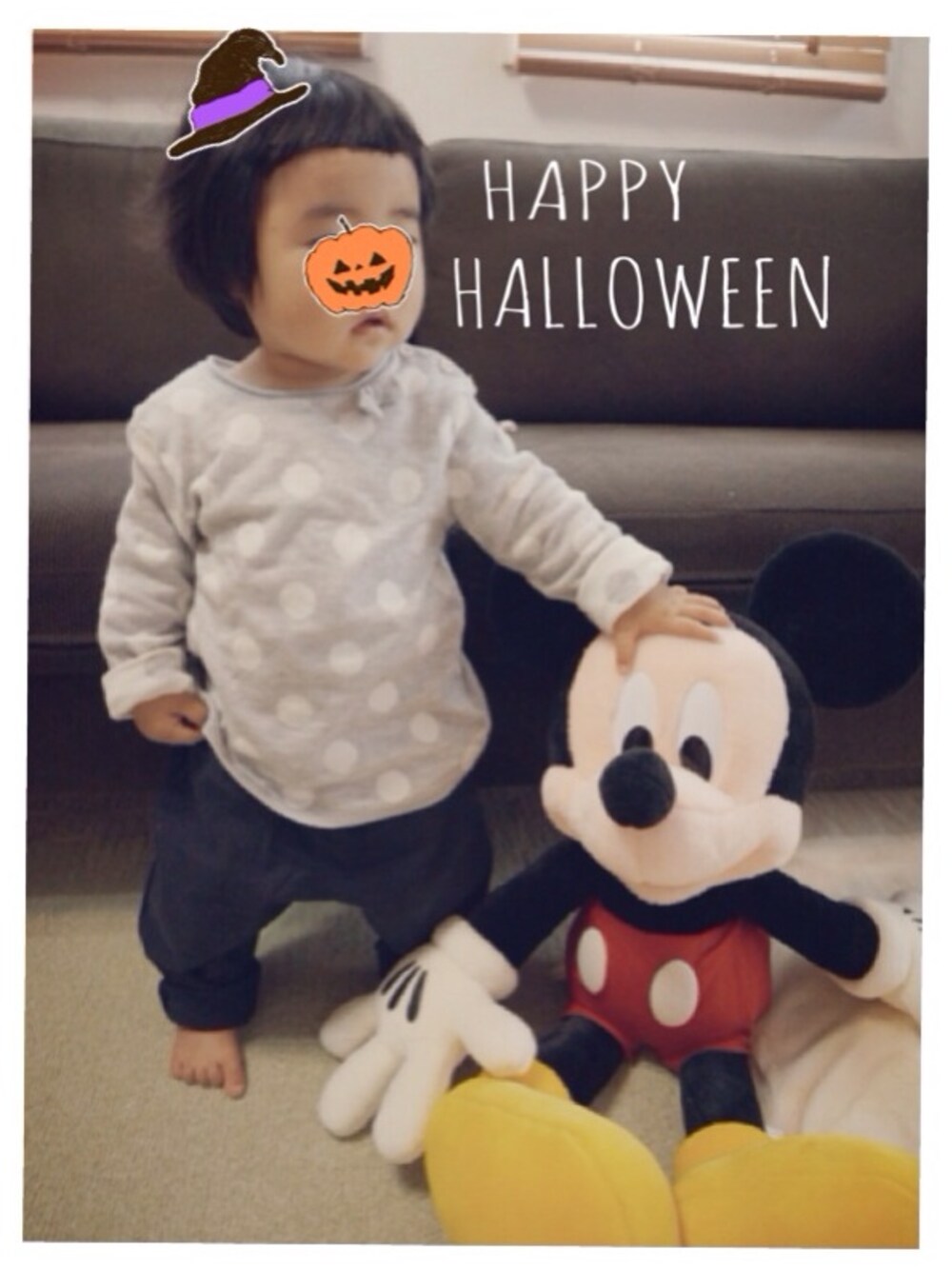 トップス ⁑ H&M パンツ ⁑ 無印良品 ハロウィンのタグで載せても いいのか迷ったけど、記念に♡ 来年は何かしてみようかなぁ〜 むすめはこの後、人生初の発熱。 早くよくなっておくれ♡