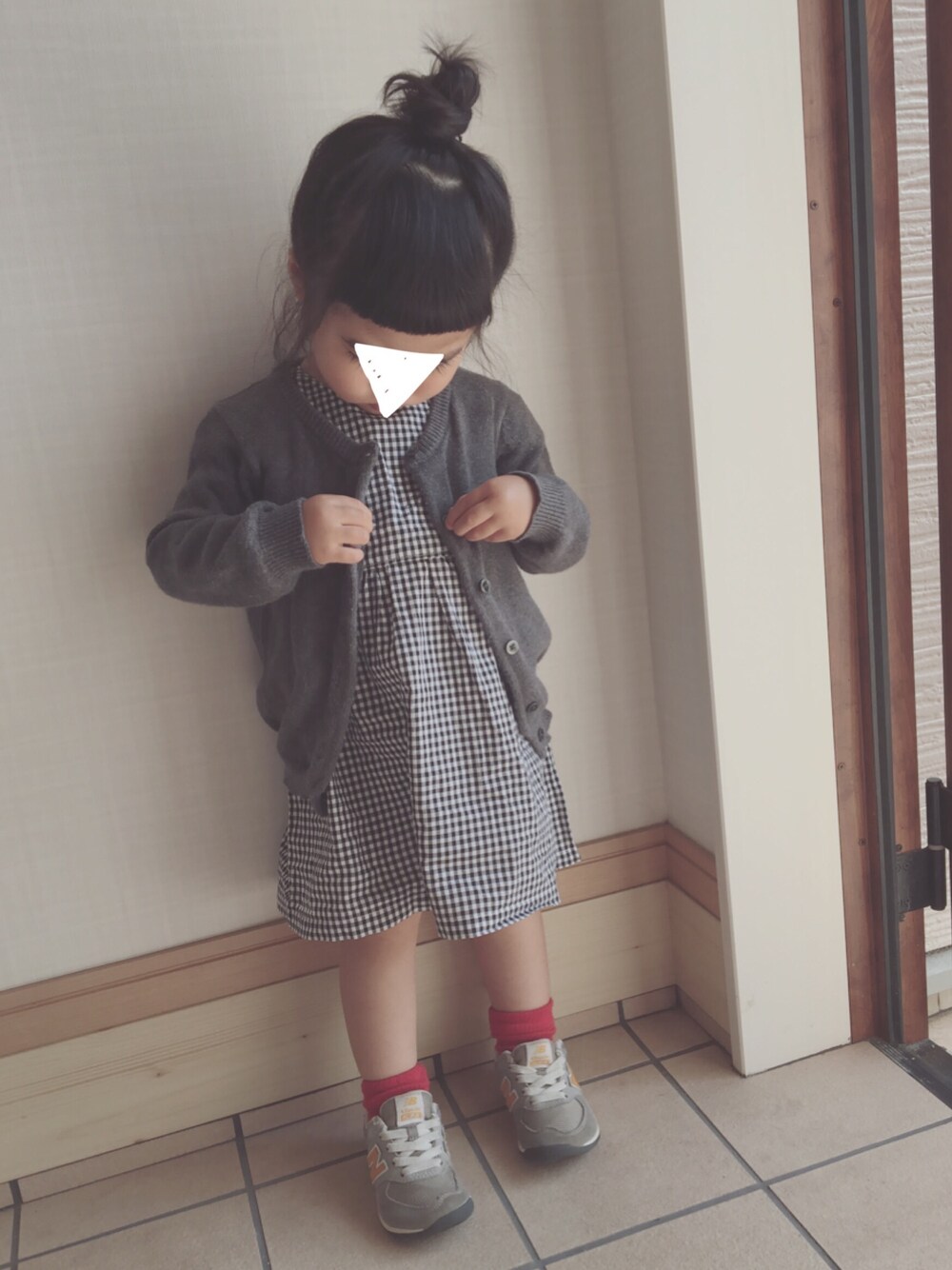ワンピース : ハンドメイド カーディガン : 無印良品 靴下 : プティマイン 靴 : ニューバランス 私の母に作ってもらったワンピース♡ 袖なしなので、1枚で着れるのは まだもう少し先かな(* ॑꒳ ॑* )
