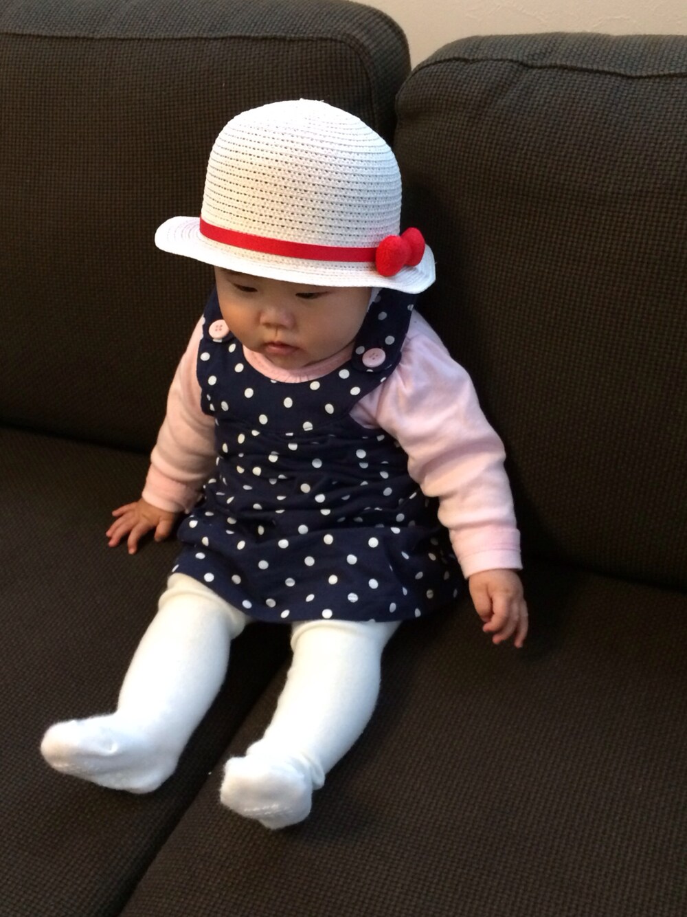 ワンピース,ロンパース ⁑ カーターズ 白タイツ ⁑ アカチャンホンポ 帽子 ⁑ 赤ちゃんデパート水谷 暖かくなってきたから お出掛けに帽子を購入(∗ˊ꒵ˋ∗)