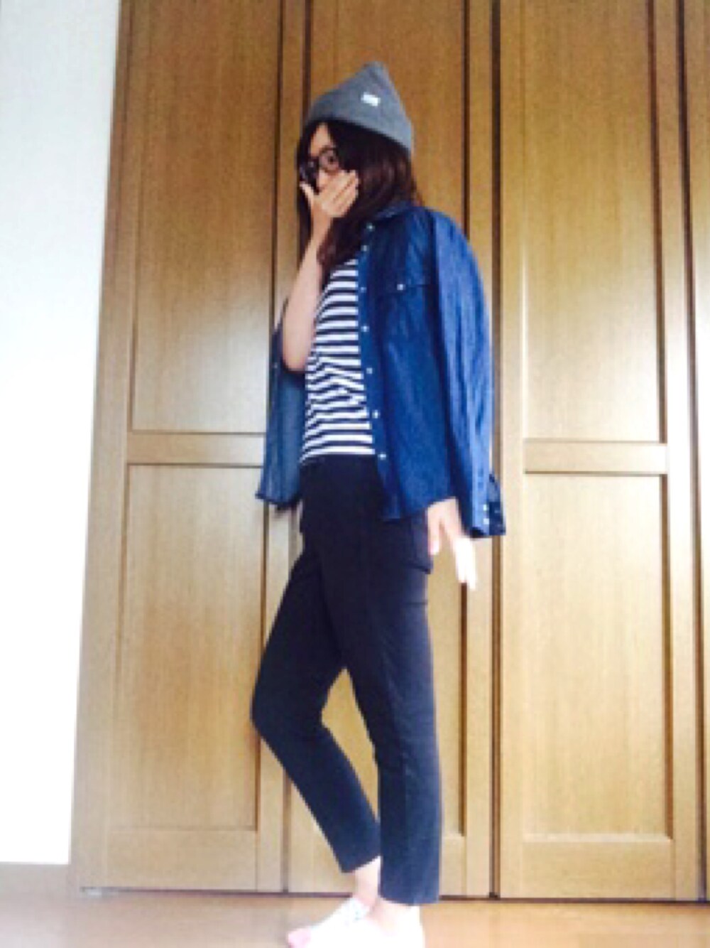 mikiのトップス「(GU)デニムシャツ(長袖)」を使ったコーディネート