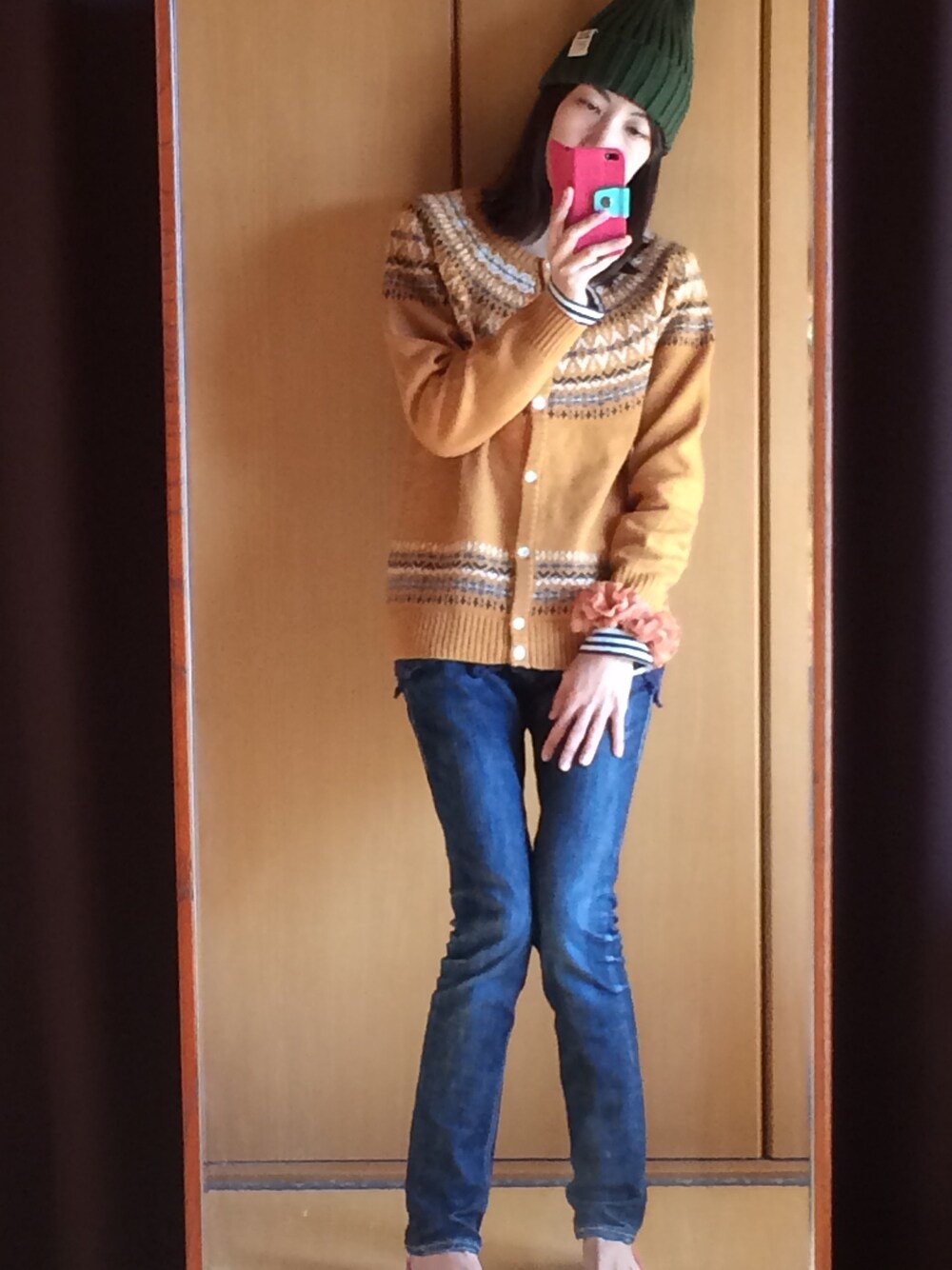 今日はシンプルイズベスト!! からし色カーディガンは閉じで使いたかったのであえて。そして、秋カラーとしてチョイ色足しにモスグリーンのニット帽にしてみたよ❤︎タグ付きのニット帽欲しくて探してたら〜1000円で購入(*^_^*)そして、モカシンを履いて秋完成(笑)