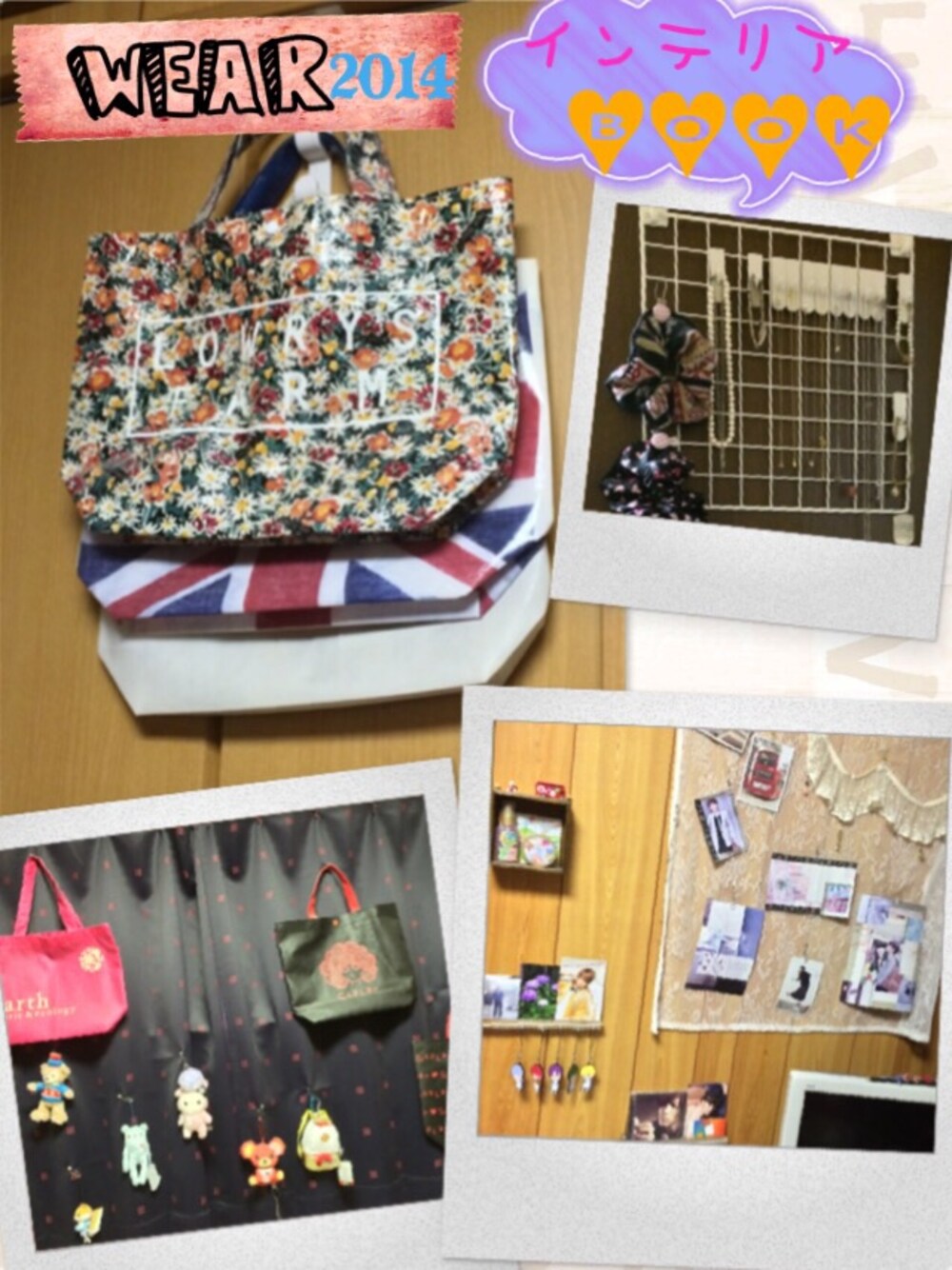 今日は私の大好きなライちゃん主催のフェス❤︎インテリアは好きなのですが…なんでも飾ってしまおう‼️っていう考えが強いのでこんな部屋になっちゃいました(笑) ローリーでもらうショップ袋がかわいぃのでクローゼットの上に飾ったり⤴︎カーテンにも、スカラーの袋やアースの袋⤴︎ぬいぐるみ達がいまーす❤︎そして壁が殺風景だったので100均で買ってきた箱などを塗って物入れて飾ったりアレンジしたりレースが好きなのでレースに飾りつけしたり(≧∇≦)そしてそして⤴︎アクセいっぱいあるので、またまた100均のキッチンコーナーのもので、アクセおき作りました⭐️ なんか統一感はないけど❤︎好きな部屋❤︎