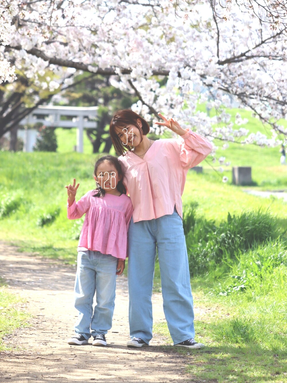 先週のお花見◯ 可愛さより動きやすさ重視の葉っぱさん。 違う服用意してたけど、デニムがいいんやと。