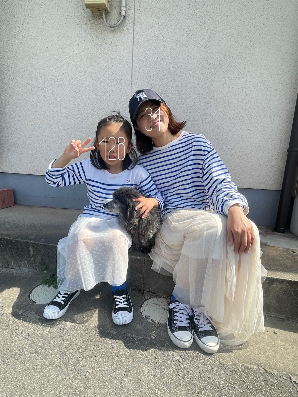 春は青ボーダーが着たい♡ ふわふわスカートは葉っぱさんの背が伸びて、少し短くなってきたー 早く着ないと!
