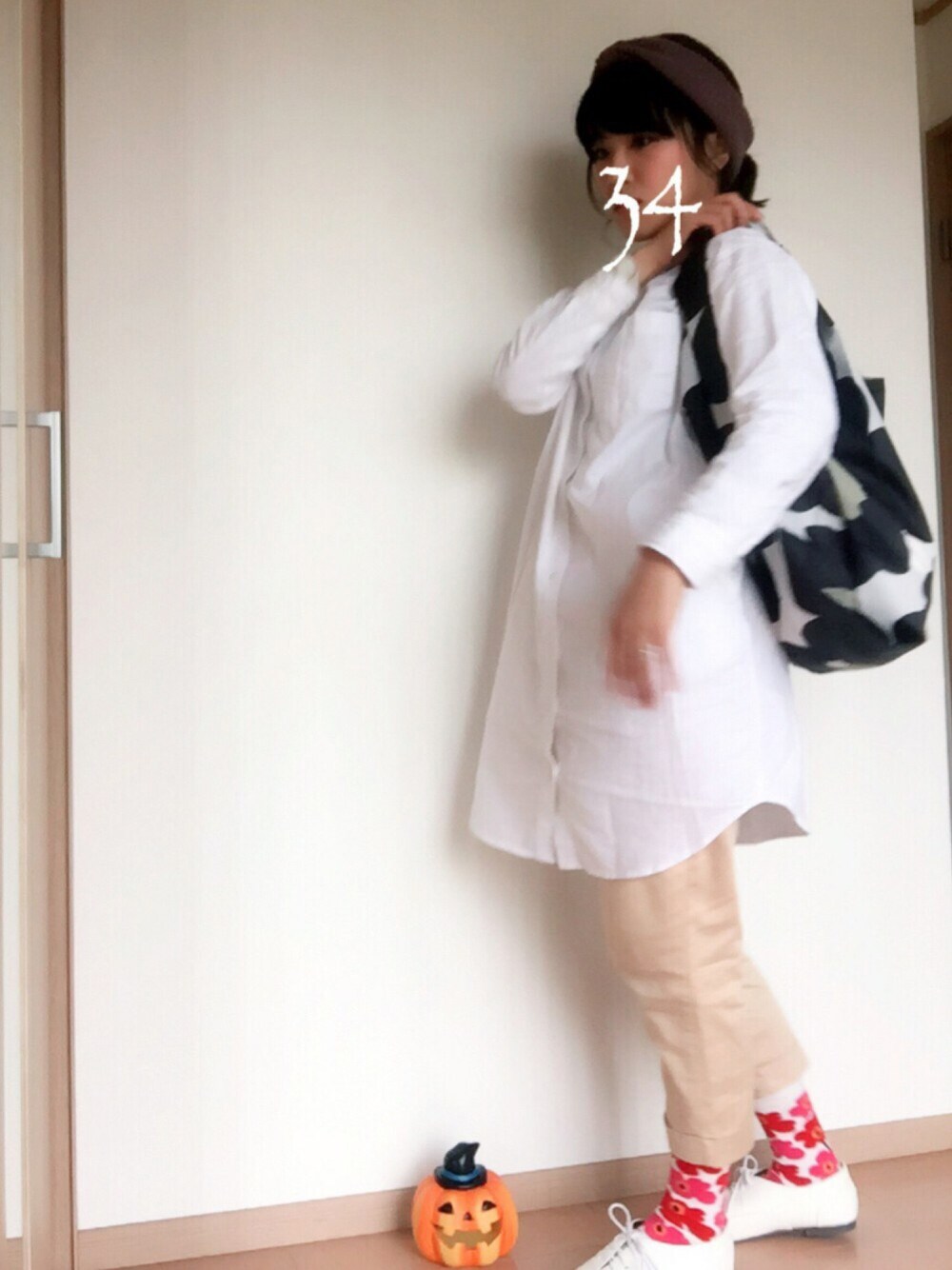 🎃🎃🎃 全くもってハロウィンじゃないけど、 気持ち程度に ジャック・オ・ランタンに 登場してもらって。 白シャツワンピ は 久しぶり◎ 白×ベージュに マリメッコ を添えてみました⚮̈ いつもいいね、saveありがとうございます(*_ _)