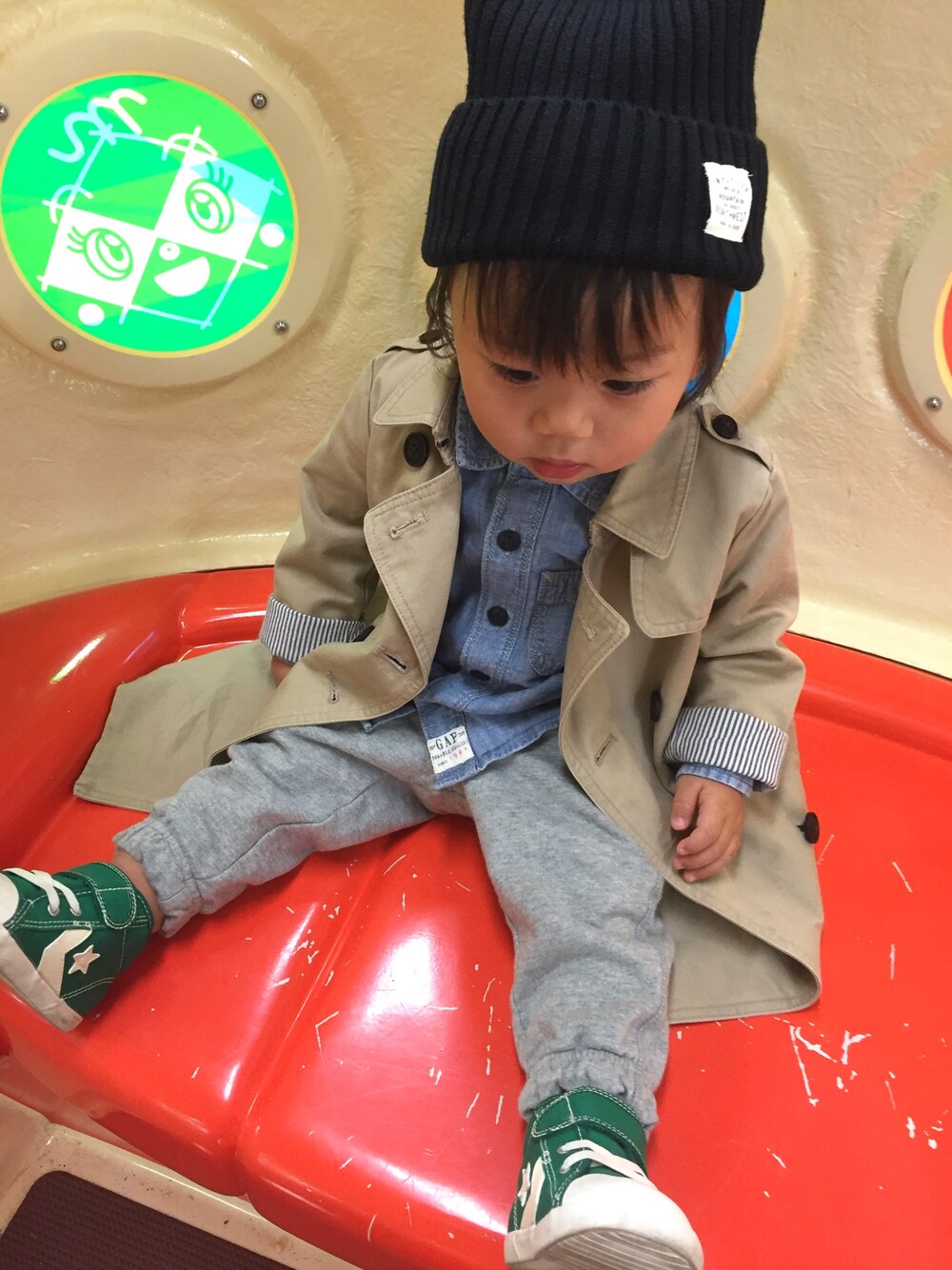 ゲームコーナーのアンパンマン号から離れない人。