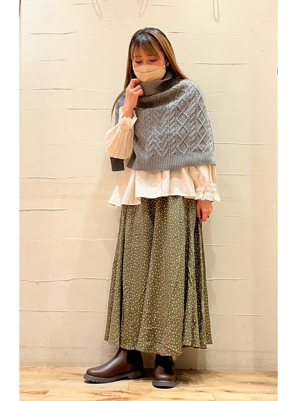 mina muroyaのネックウォーマー/スヌード「ケーブルニットケープスヌード」を使ったコーディネート
