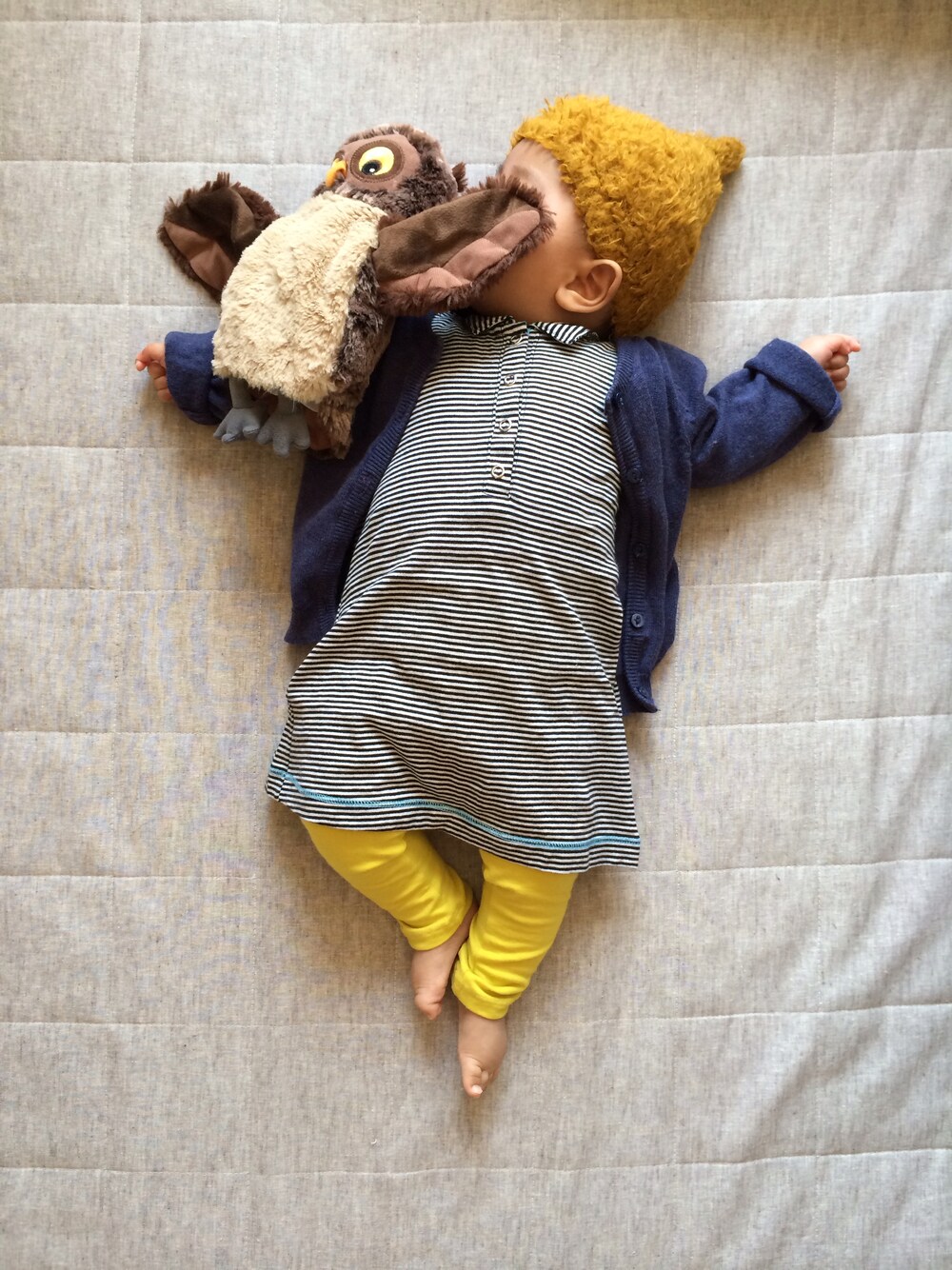 カーデ:H&M ワンピ:プチバトー 帽子:コキチカ