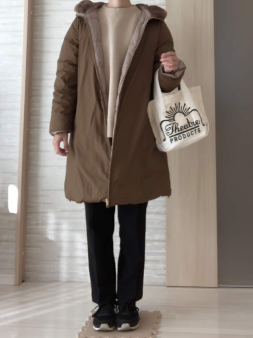 スウェットコーデです。 だらしなくならないように、パンツは黒のセンタープレスにしました。 色はアイボリー・キャメル・ブラックのみにしてシンプルにまとめてあります。
