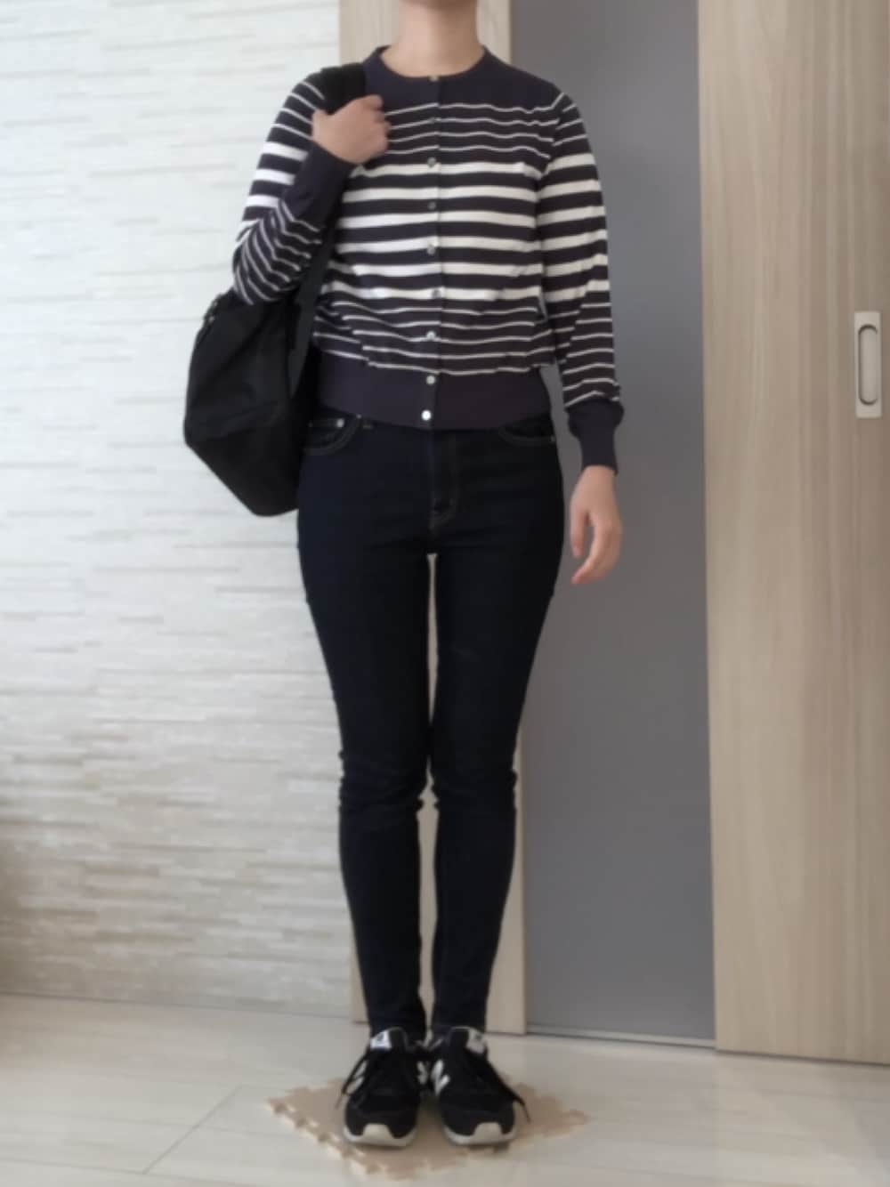 ボーダーアンサンブルを着たコーデです。