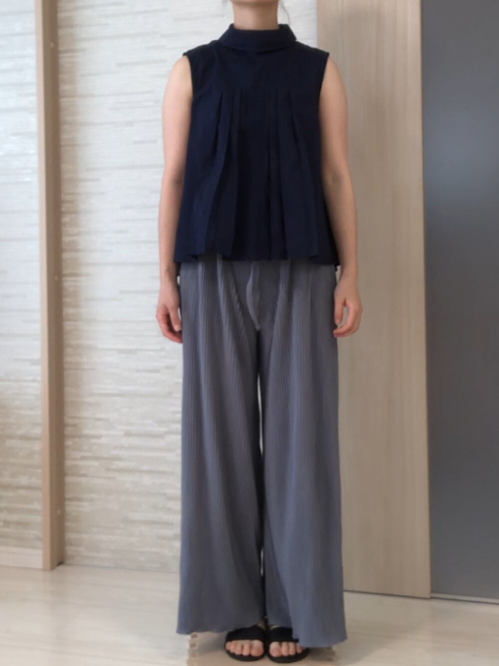 UNIQLOとMARNIコラボのタックブラウスを使ったコーデです。