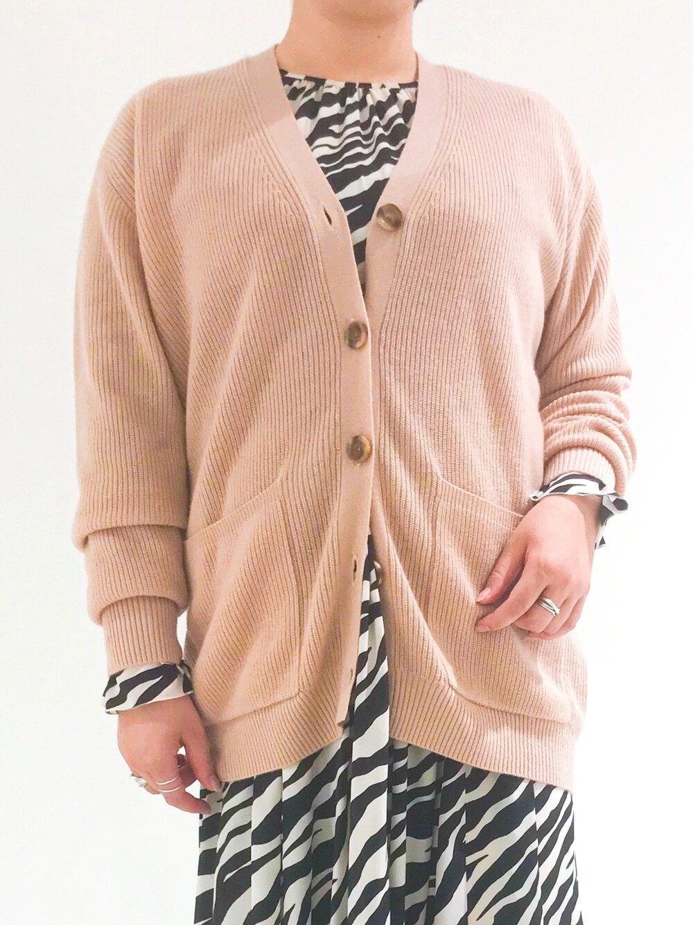 カーディガンは少しだけカシミアが入ったニット。 ゆったりしてますが落ち感があるので 身体のラインに程よく沿ってくれますよ🙌✨