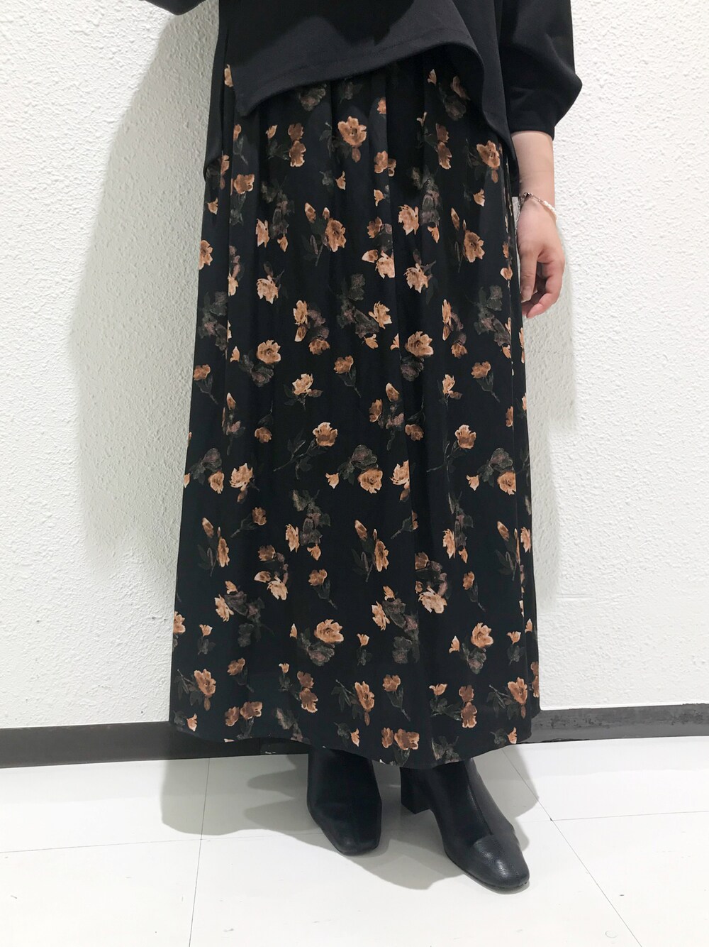 miki(オゥ バニスター 新宿高島屋店)のスカート「フラワープリントマキシスカート」を使ったコーディネート