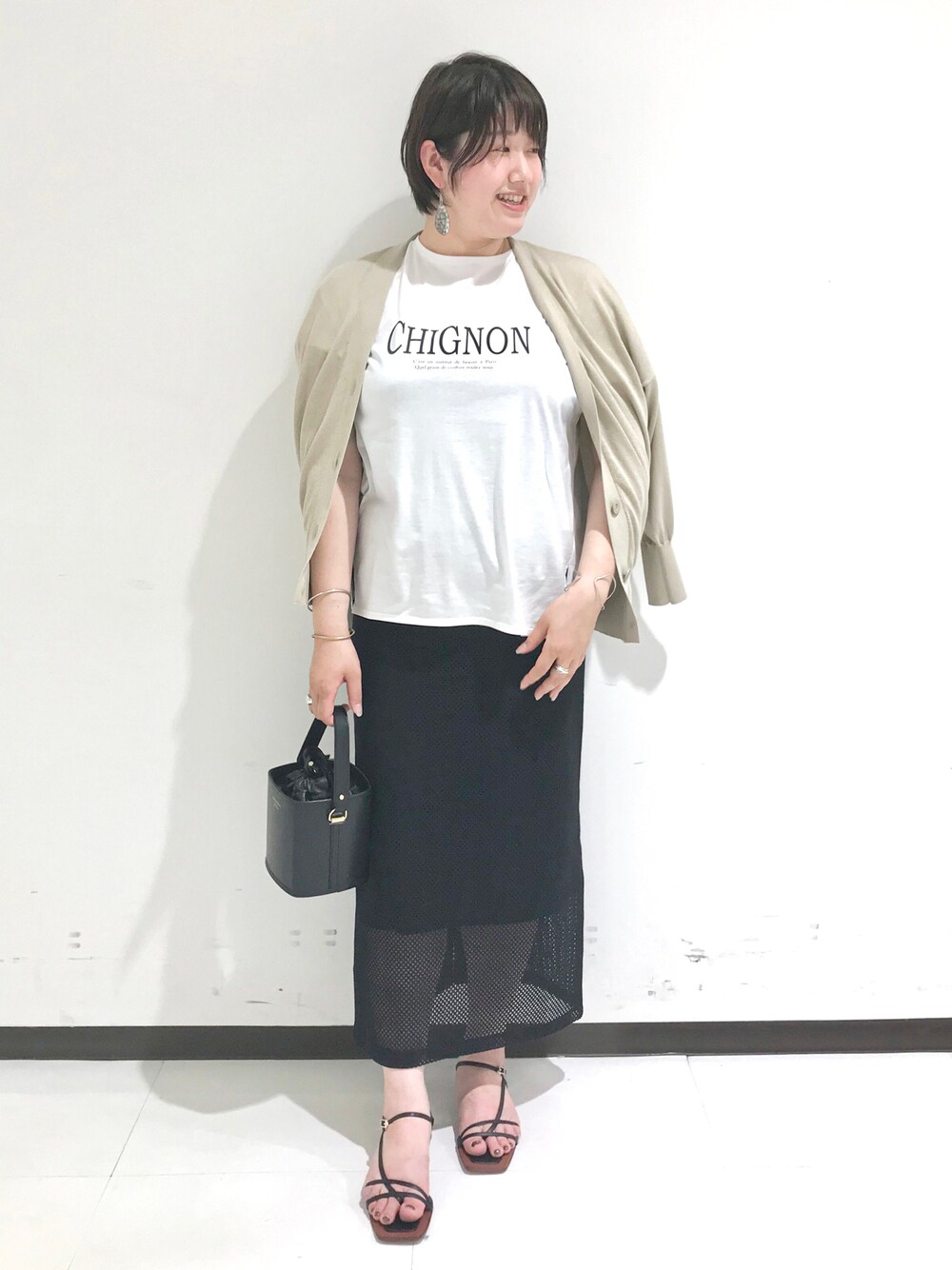 一見レースに見えるメッシュスカートを使った大人カジュアルコーデ✨
