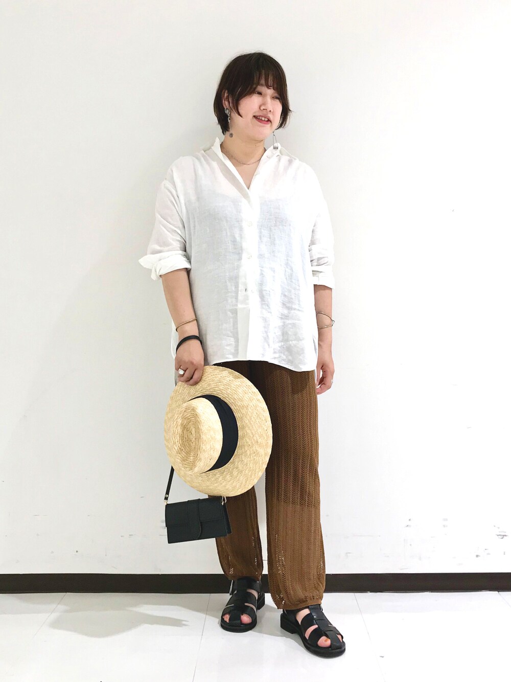 miki(オゥ バニスター 新宿高島屋店)のシャツ/ブラウス「リネン製品染シャツ羽織り」を使ったコーディネート